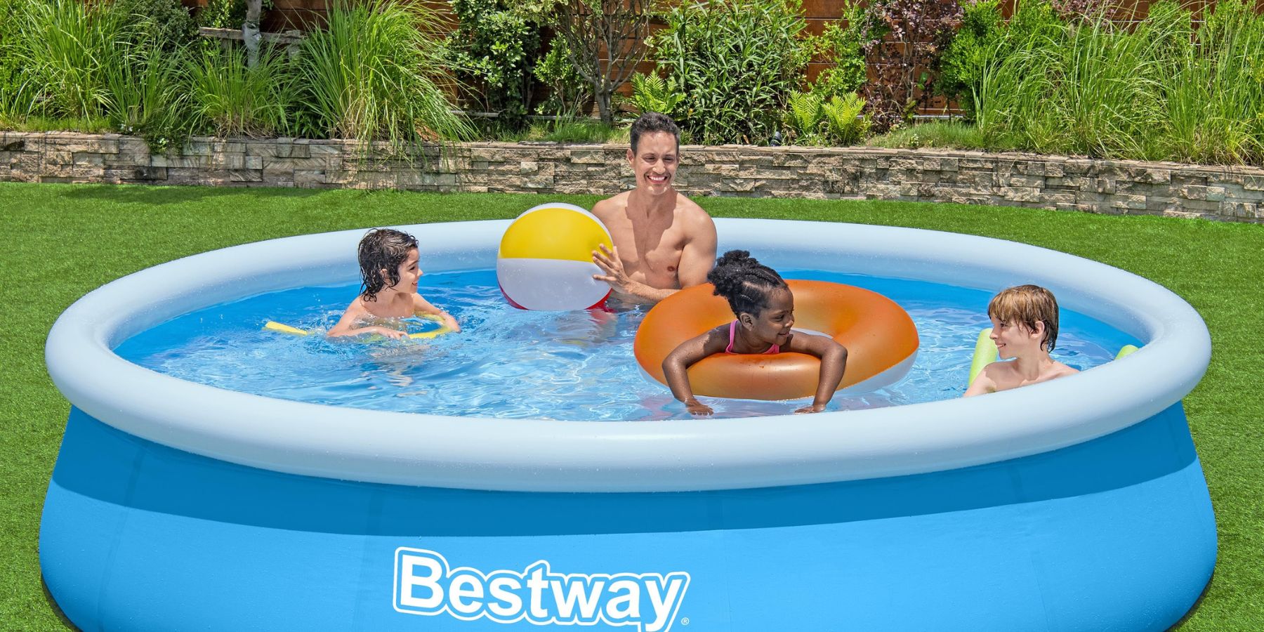 Unlike in‑ground swimming pools which require digging and considerable setup time, a Fast Set™ inflatable swimming pool can be quickly setup on a flat surface.