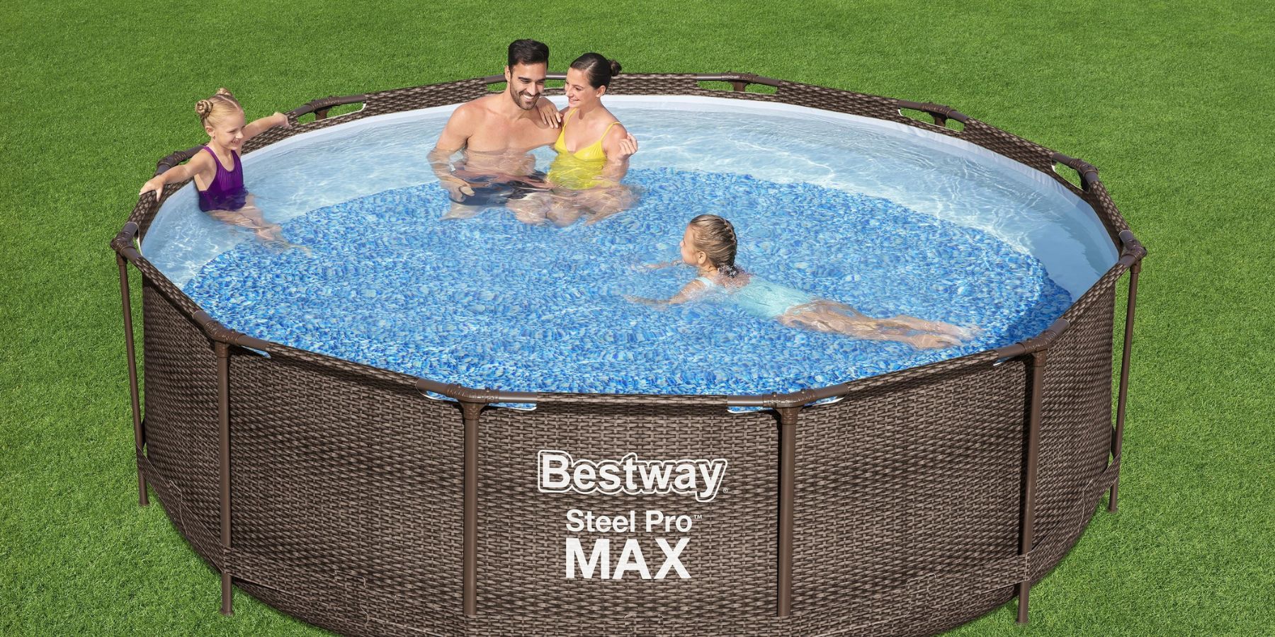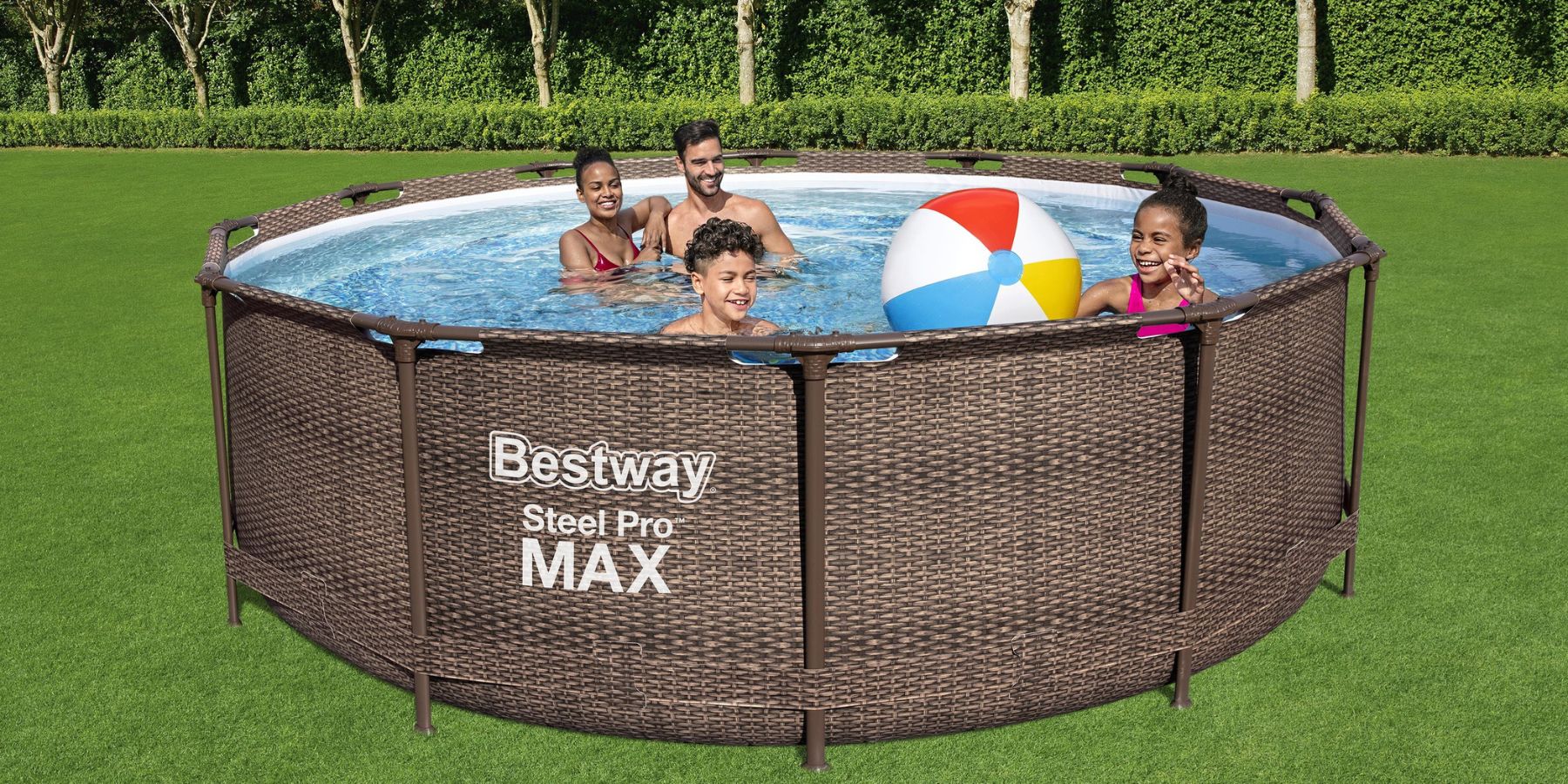 The 12ft Bestway® Steel Pro Max™ Deluxe Series™ pool offers strength and style with a rattan print design that blends into outdoor spaces. It is also supplied with a 530gal filter pump which will help keep your pool debris free.