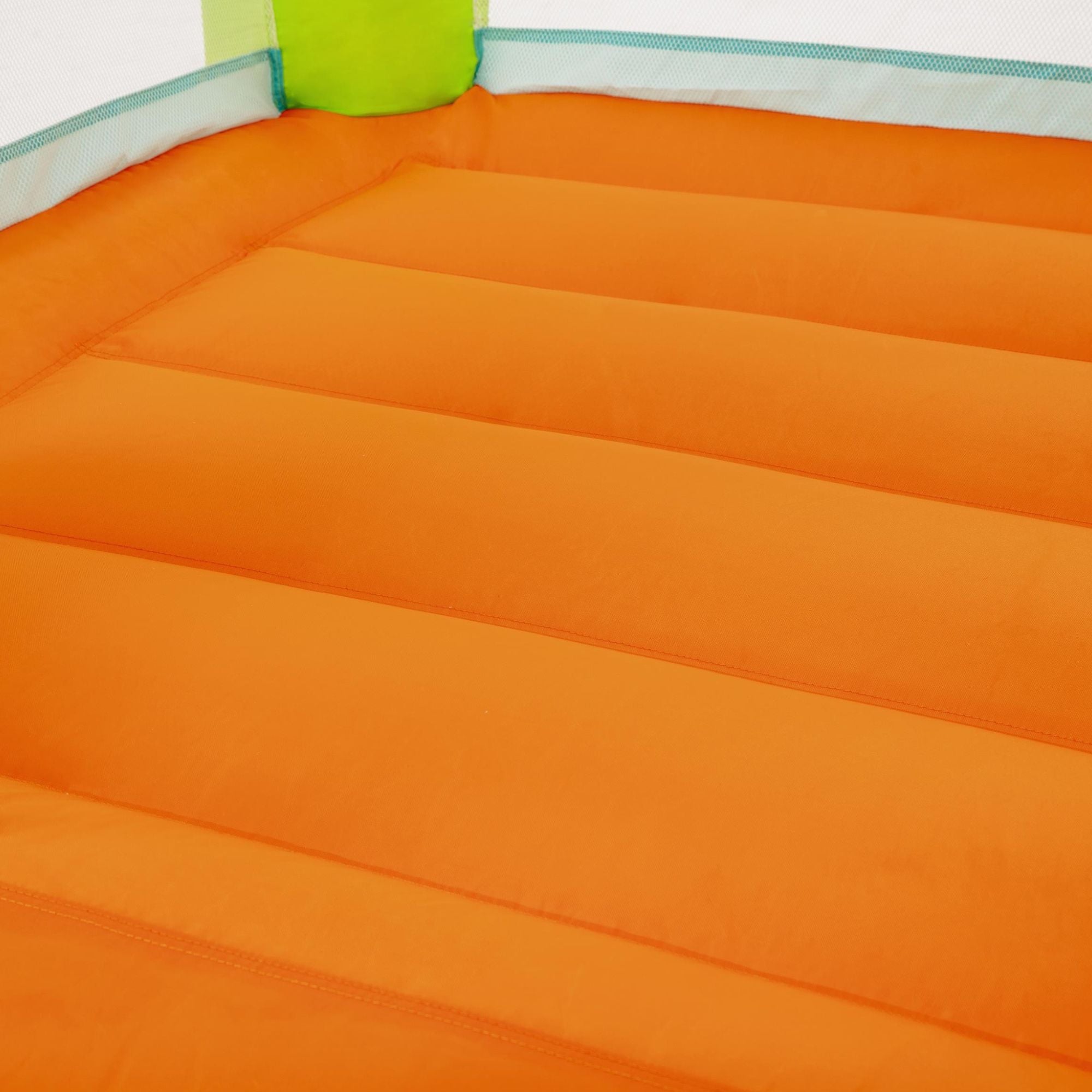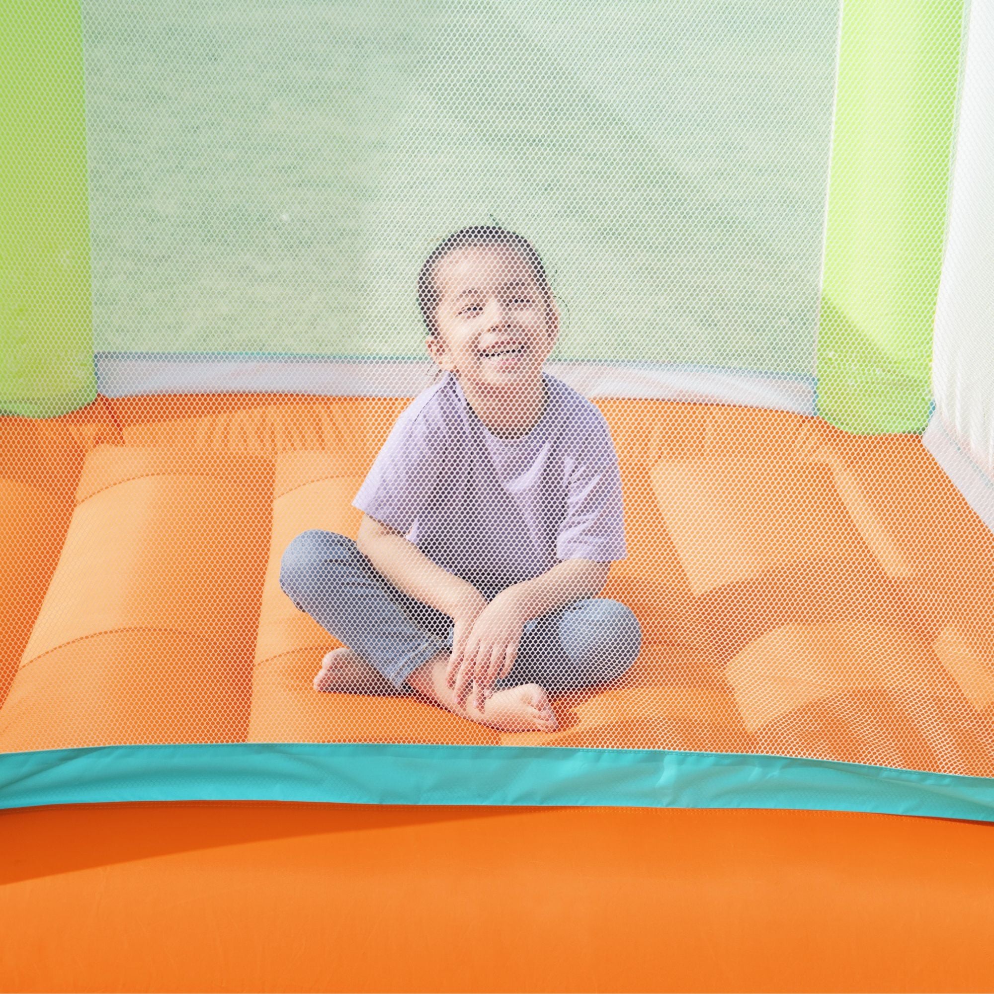 - Features safety mesh walls for your kids to be safe and secured inside the inflatable bouncer, so that parents are always able to keep their eyes on the kids as they play. Double stitched material for increased durability with PVC polyester material