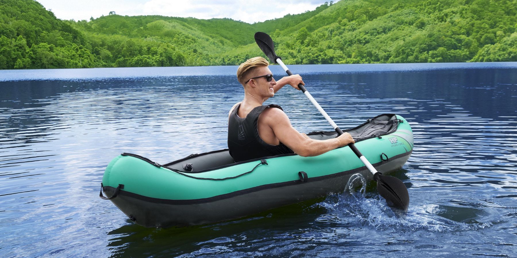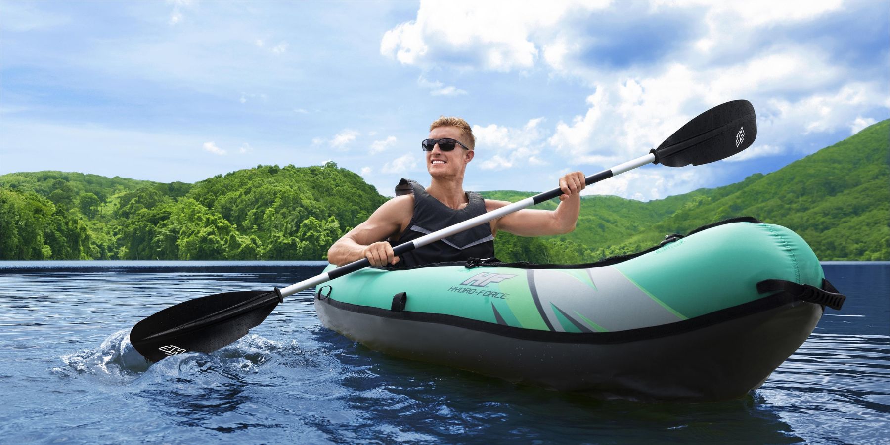 Designed with an adjustable backrest for comfort and support, this single-seat kayak can fit your essentials like snacks and water in an easily accessible storage compartment below each seat. Ther is also a removable storage bag that allows you to access your necessities as you paddle through the water. The double-bladed oar is aluminium, lightweight, and held flush to the kayak by secure oar clasps. It has sturdy canvas handles on each side, which makes moving the kayak a breeze.