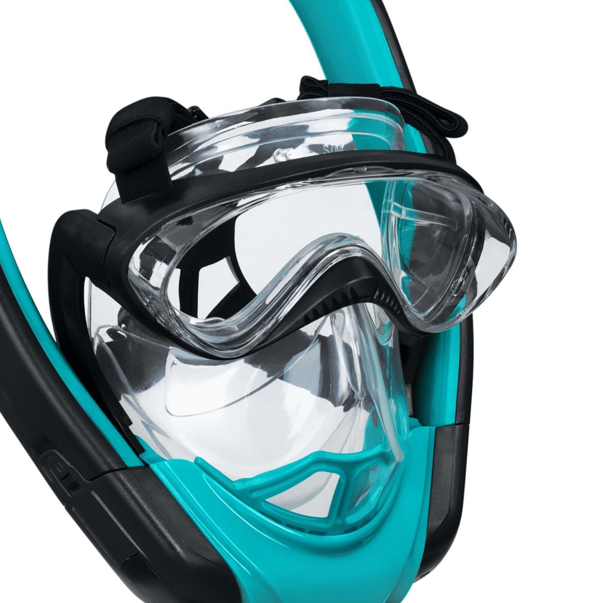 - The Bestway Hydro-Pro SeaClear Flowtech Snorkeling Mask allows you to breathe freely and naturally underwater; S/M size recommended for Adults
