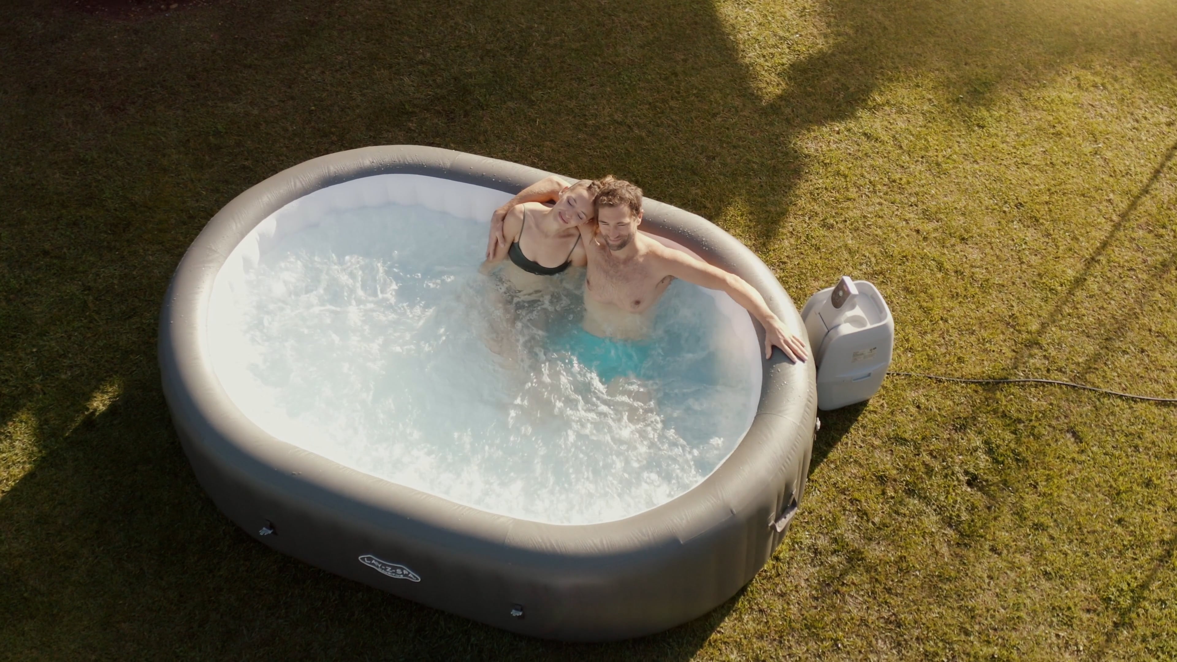 Relax and unwind at home and enjoy positive benefits to health and wellbeing with the Lay-Z-Spa Mauritius Smart AirJet™, a 7-person oval-shaped inflatable hot tub with WiFi.