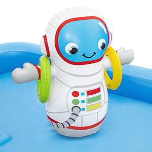 - Encourage active play with entertaining games like ring toss with the removable crescent moon target, or knock down the floating astronaut bop bag toy for hours of fun. The play center also comes with built-in gentle cooling water mister