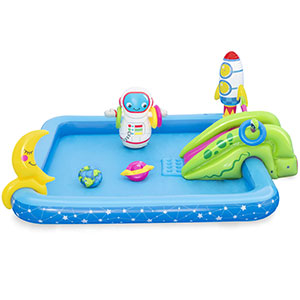 - Astronaut bop bag, Moon ring toss game and 2 planet flying disc toys! This interactive paddling pool will provide your kids with endless hours of fun!