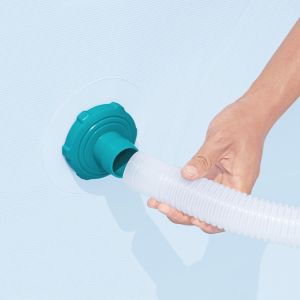 - Adjustable hanger simply hooks over the inside pool wall near the suction inlet with no extra hoses or adapters needed for quick setup.