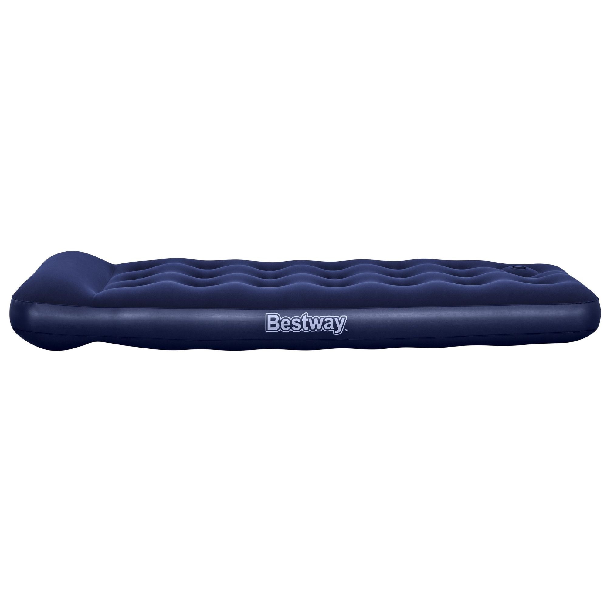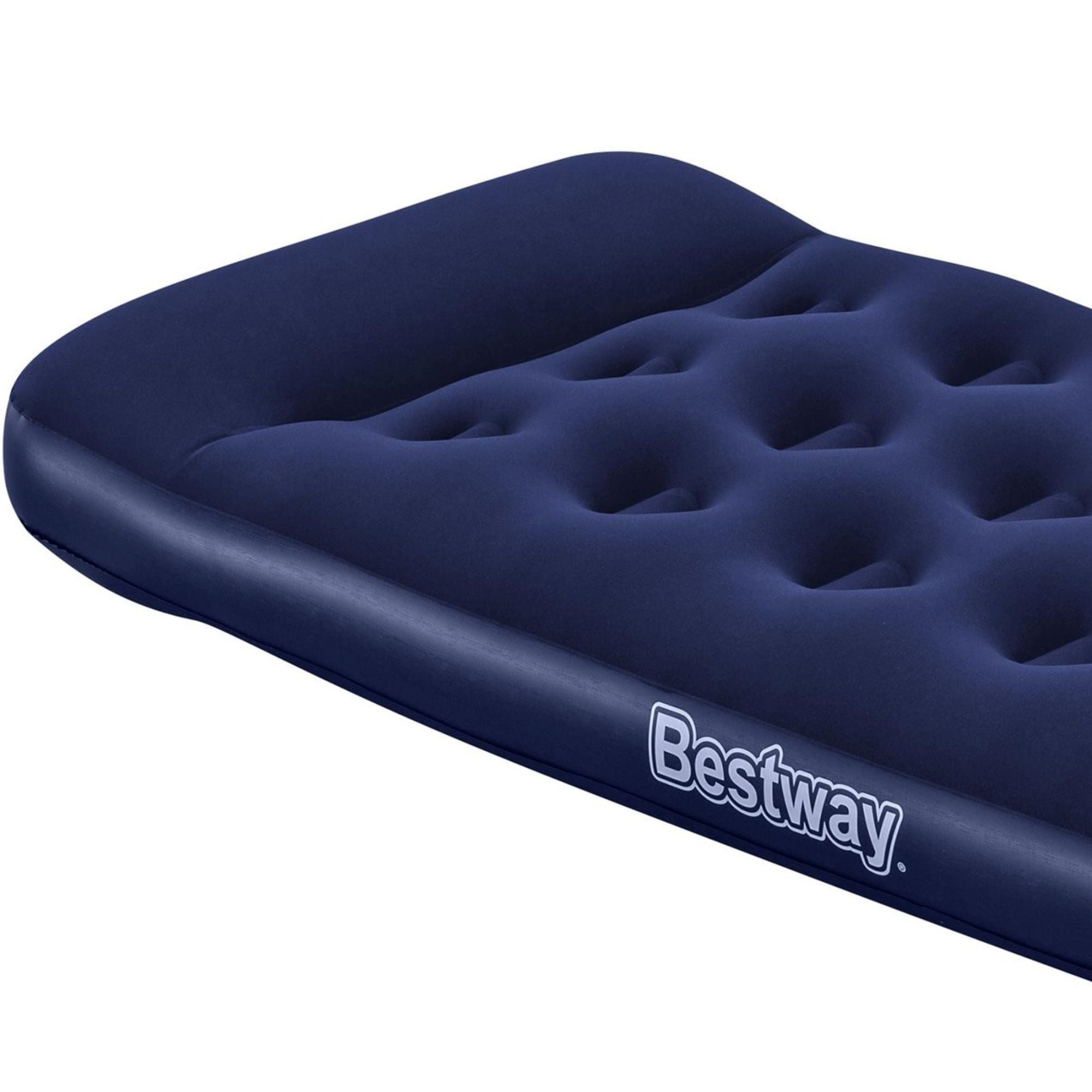 - The Bestway Single Easy Inflate Flocked Airbed set includes a single airbed with built in foot pump and pillow, as well as a heavy duty repair patch