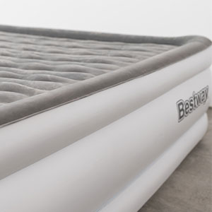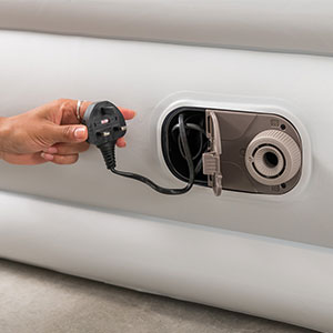 - Built-in 220-240v electric pump that quickly inflates and deflates the air mattress in under 5 minutes and includes storage for the power cable
