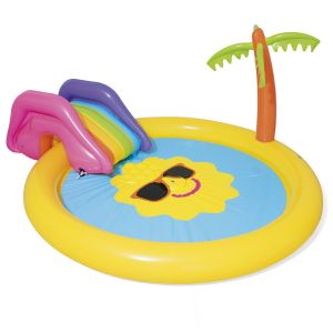 - The Bestway SunnyLand paddling pool play centre comes as a complete set; featuring pool, slide and a repair patch